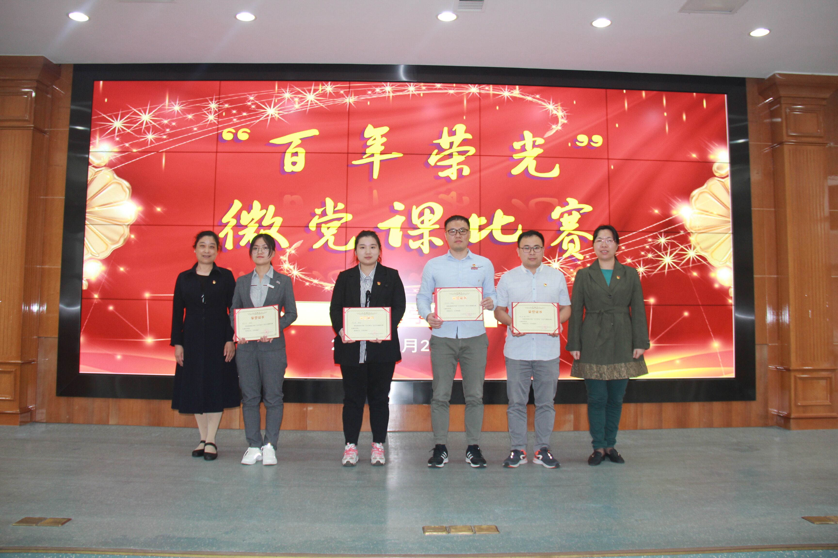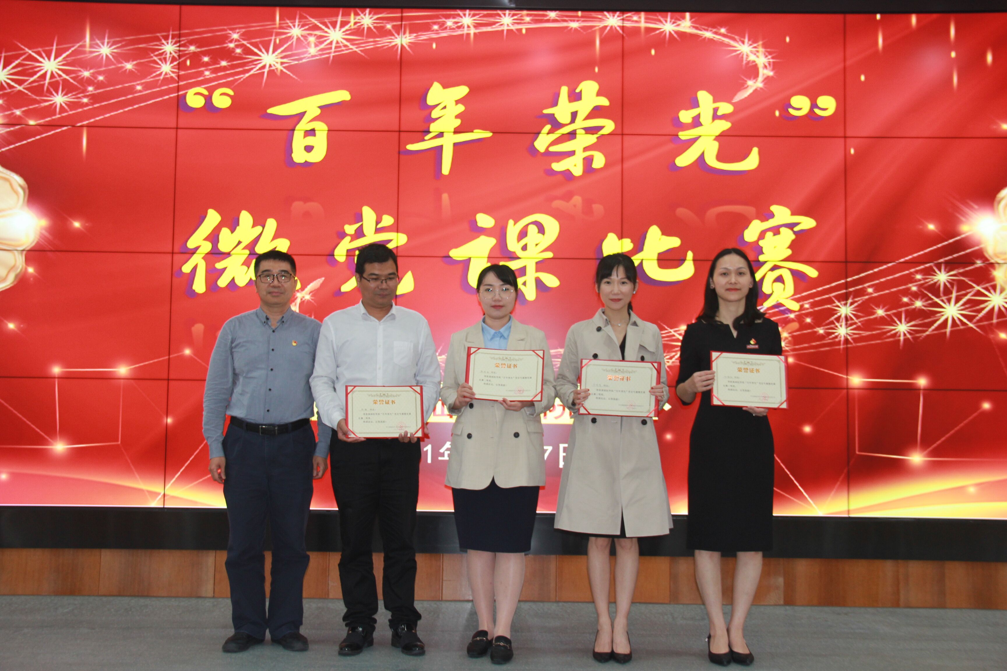 开班式后学院举办了“百年荣光”微党课比赛,福建工程学院马克思主义学院宋雪霞教授、学校党委宣传部杨新勇部长、学校教务处王世鄂处长担任评委,科研中心党支部书记柯荔宁主持比赛。经过激烈角逐,李丽、吴云丽荣获一等奖,刘晓如、郑敏、张丽虹、吴林青获二等奖,陈丽红、周莹、吴枝娟荣获三等奖。王玥、郑晨华、施佳健、陈亚乐(学生)获优秀奖,现场进行了颁奖。
