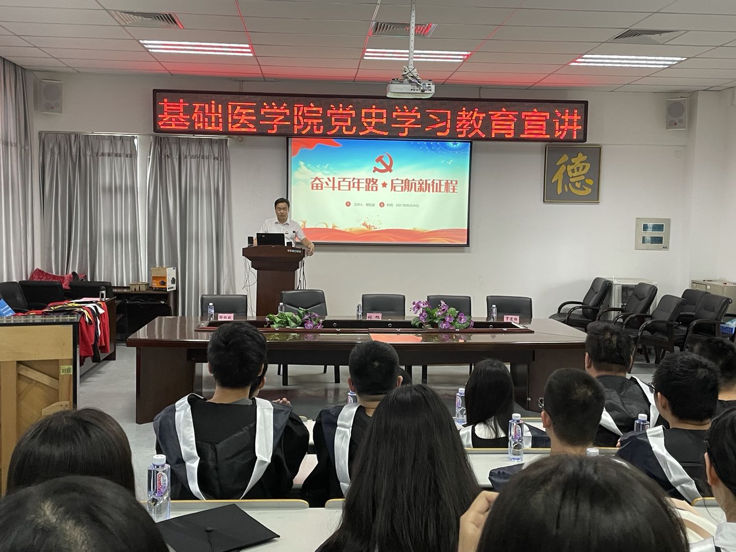 6月24日上午,院党委书记郭松斌在世界杯 南区513会议室为2021届世界杯 毕业生同学作了题为《奋斗百年路启航新征程》的党史学习教育宣讲报告。