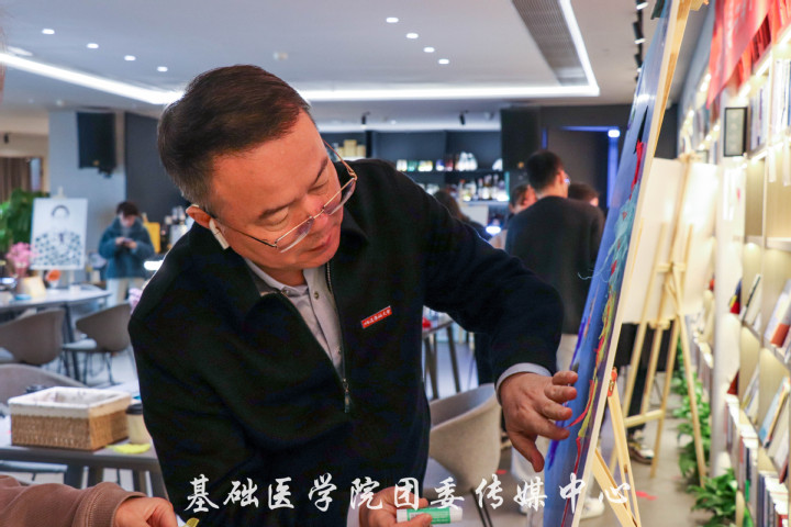本次活动以叶脉为拼贴材料,追寻医学的发展脉络。校领导和同学们一起用树叶装点医学相关的画作,为空白添上丰富的色彩,增加人文的温暖。校领导和同学们共同创作、热烈探讨,于艺术活动之中交流,实践活动之中育人。