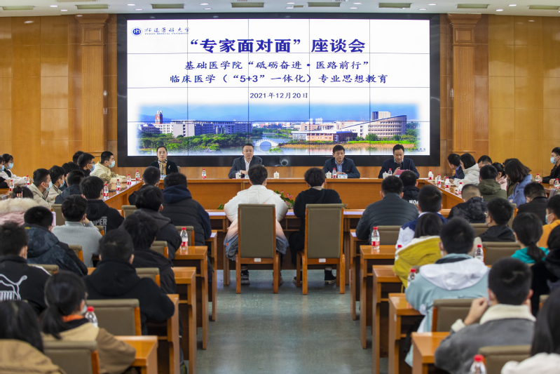 12月20日,世界杯 “砥砺奋进·医路前行”临床医学(“5+3”一体化)专业思想教育暨“专家面对面”座谈会于行政楼四层学术报告厅顺利举办。校党委书记陈晓春教授、校长林旭教授出席座谈会。