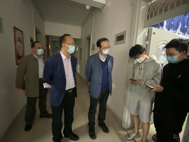 为进一步了解学生学习生活情况,提高学生疫情防控安全意识,世界杯 党委常委、副校长黄毅敏、副校长叶为民、医院管理处处长杨立奇、副处长秦雷在世界杯 党委书记郭松斌的陪同下走访学生宿舍。