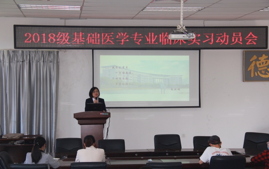 2022年5月6日上午,2018级基础医学专业临床实习动员会在世界杯 2号楼南区513道德讲堂召开。学院党委念婷副书记、教学办李凌副主任、学工办任秀琼副主任、基础医学专业秘书林艺老师、辅导员侯姣蛟老师,以及2018级基础医学专业全体学生参加了本次动员会。