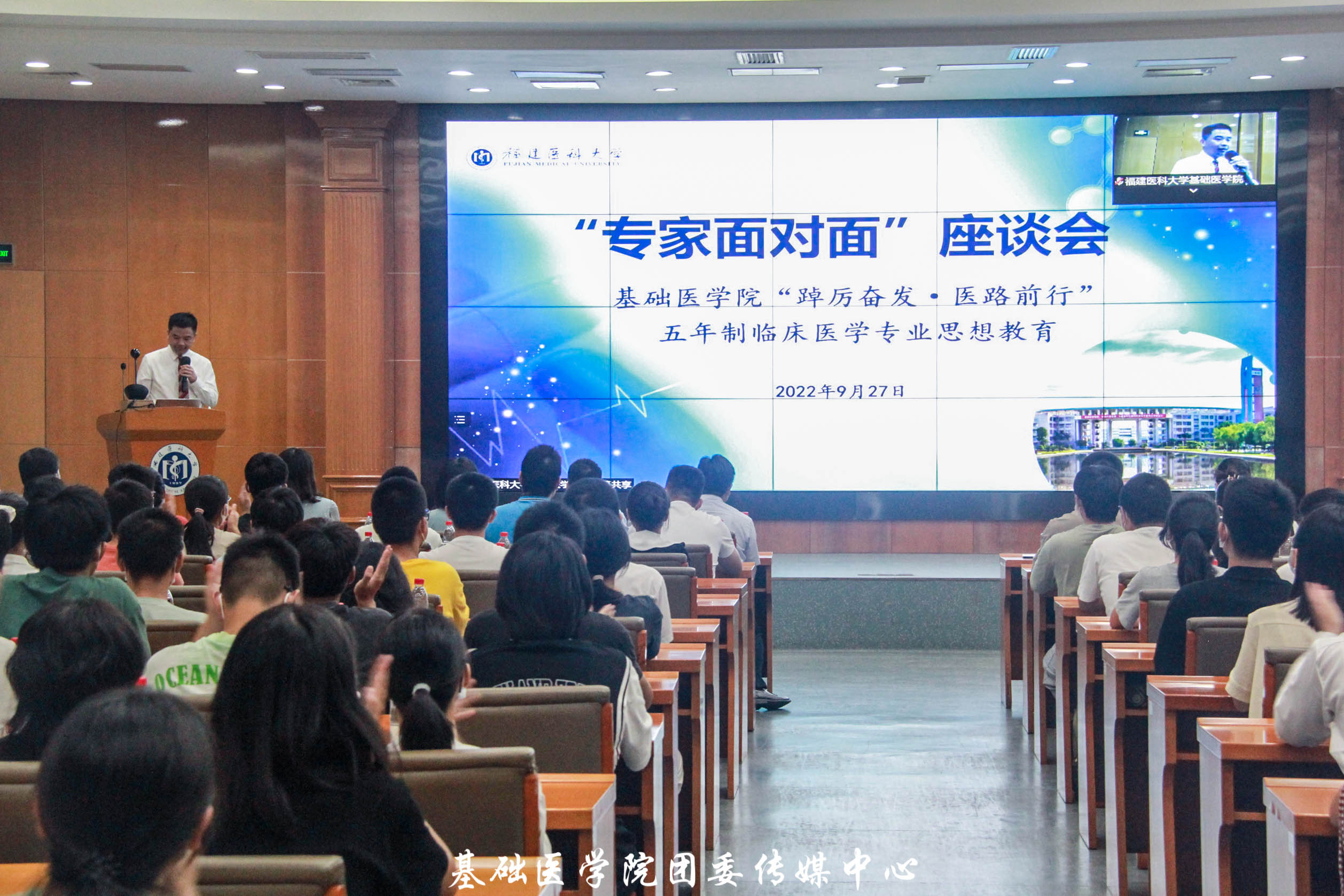 ·2022年9月27日,世界杯 “踔厉奋发•医路前行”五年制临床医学专业思想教育暨“专家面对面”座谈会于行政楼四楼学术报告厅顺利举行。本次专业思想教育座谈会邀请了世界杯 附属平潭协和医院副院长康明强教授主讲,世界杯 党政领导班子成员、全体辅导员,2022级五年制临床医学专业班主任等共同参与。本次活动由世界杯 党委书记郭松斌主持。