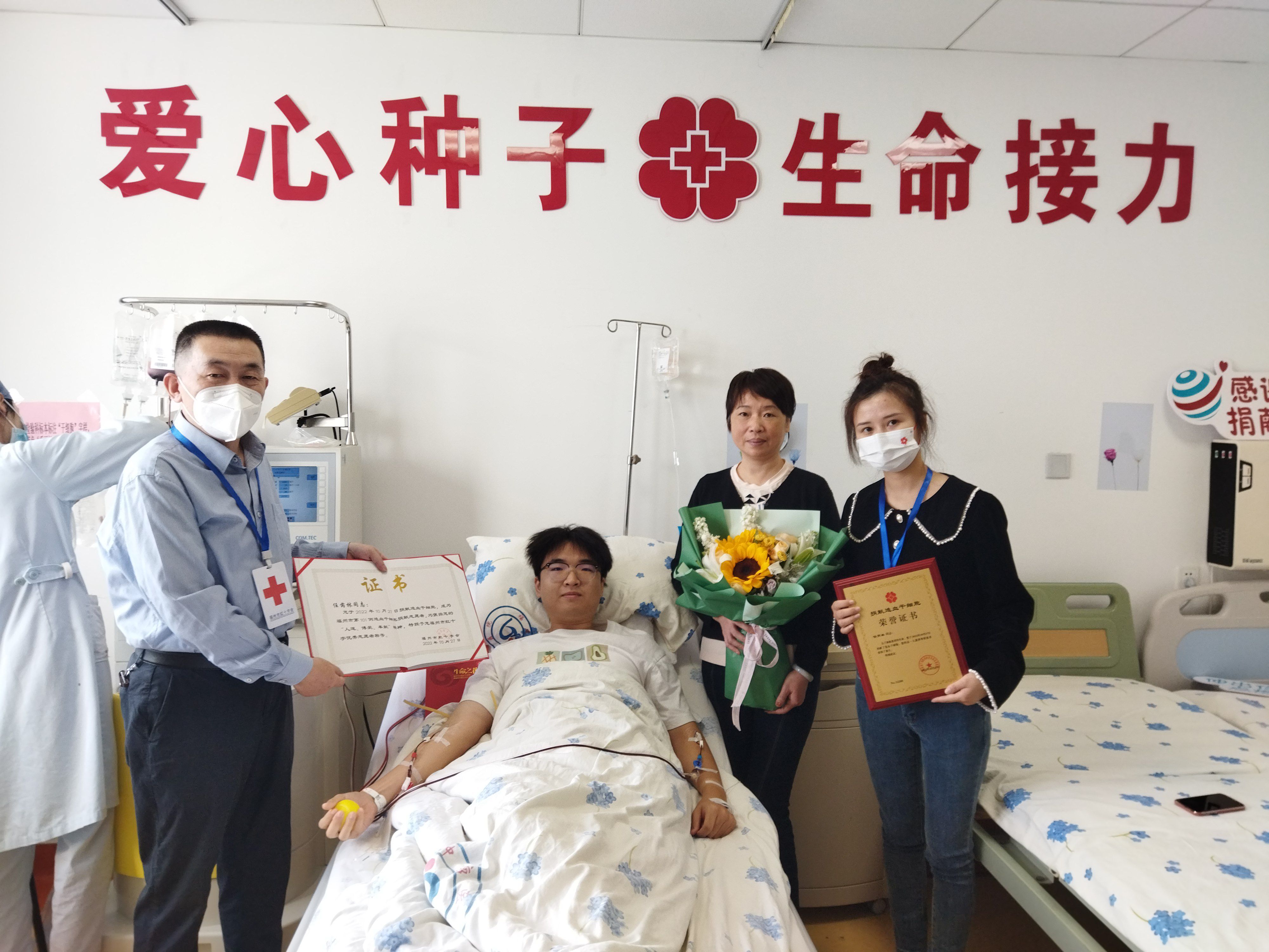 他就是任芮林,2022年10月24日上午,在福建省、福州市红十字会工作人员和省肿瘤医院医护人员的见证下,来自世界杯 临床医学专业的大三学生任芮林在志愿捐献造血干细胞同意书上签下自己的名字。接下来他经历了为期4天的“动员”,于今天,10月27日完成捐献,成为福建省第367例、福州市第101例造血干细胞捐献者。