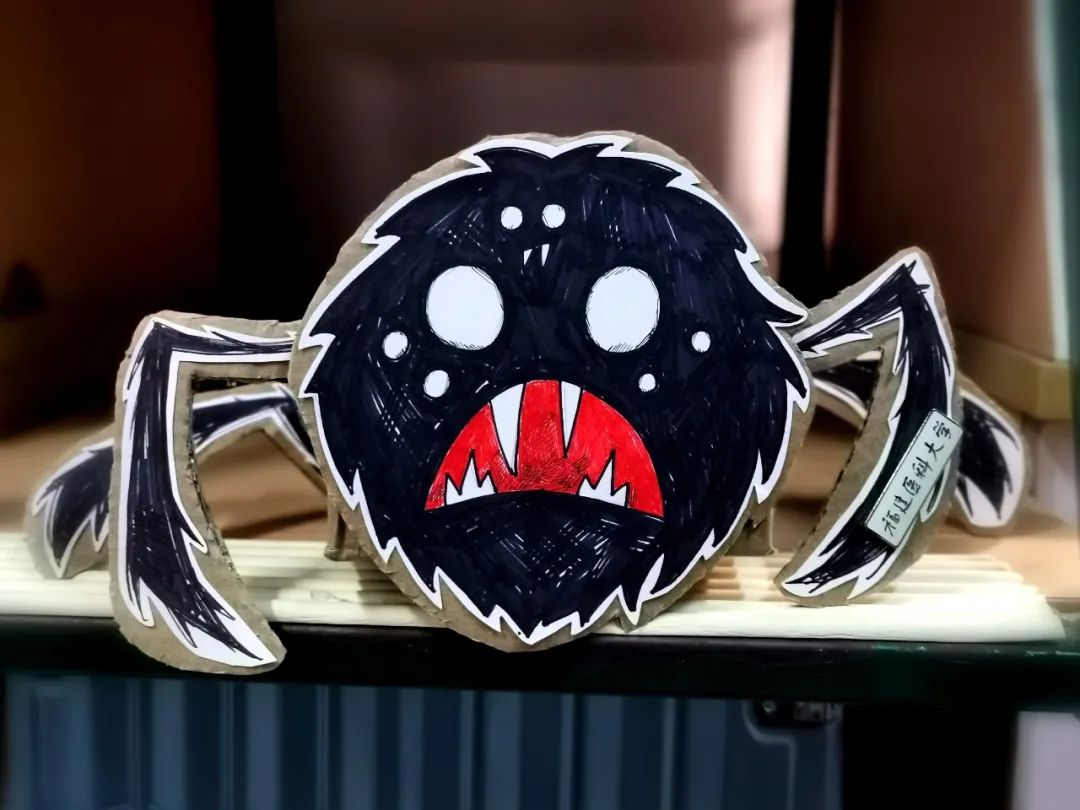 第五只爱宠是获得239票人气的【饿了就吃蜘蛛吧队(简秋彤)】的“打了会掉恶魔肉的”。饥荒里的普通小蜘蛛,很弱小很可怜但是超级可爱,黑色的,毛茸茸的。