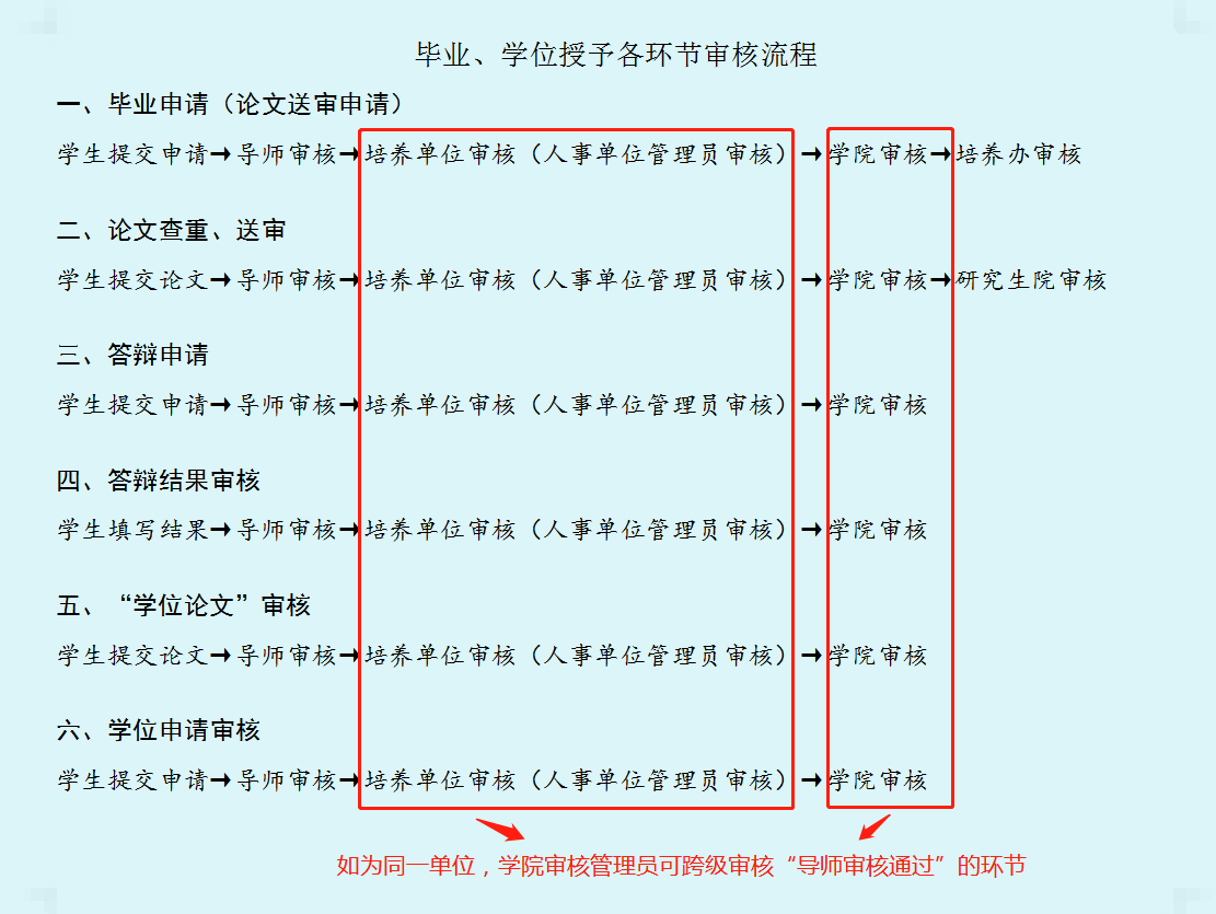 4.导师、培养单位、学院审核研究生论文查重版、送审版 | / | 3月20日前 | / | 9月25日前 | 1. 导师系统审核 2. 学院审核 | |