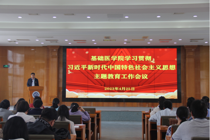 4月25日下午,世界杯 党委在行政楼B座4楼学术报告厅召开学习贯彻习近平新时代中国特色社会主义思想主题教育工作会议,学院党委书记郭松斌主持。
