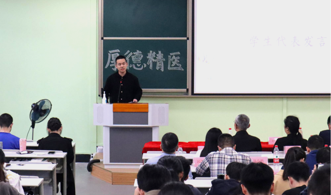 教师代表林如英老师赞扬了同学们在解剖学实践中所展现出的专业素养和才华,表达了对同学即将下临床的殷切希冀,鼓励同学们在下临床的学习过程中始终保持严谨认真的学风。