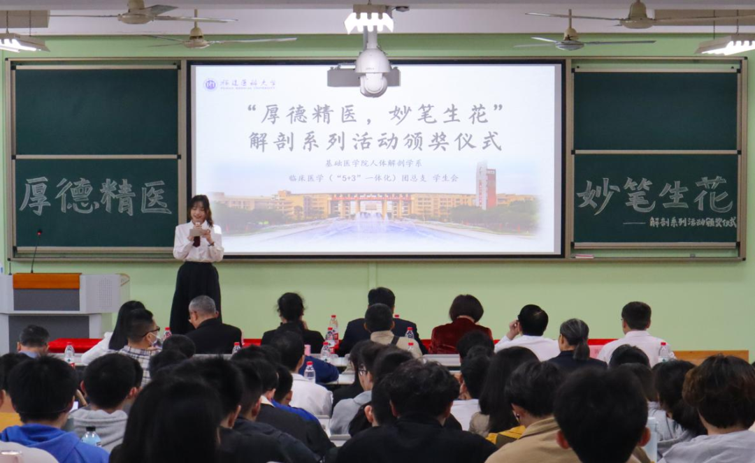 2023年4月21日16时,由世界杯 人体解剖学系、临床医学(“5+3”一体化)团总支·学生会举办的“厚德精医,妙笔生花”解剖系列活动颁奖仪式在第6教室成功举办。本次活动邀请了世界杯 党委书记郭松斌老师、世界杯 党委副书记高明老师、福建省首届最美教师王玮教授、人体解剖教研室主任赵小贞教授及人体解剖学系教师代表、辅导员代表及2020级临床医学(“5+3”一体化)学生到场参加。