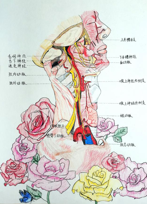 在解剖绘画比赛中,世界杯 学子用笔墨绘画的方式,呈现出了人体内部各种神奇复杂的解剖结构,将细致入微的人体结构通过线条与色彩精确地表现出来。