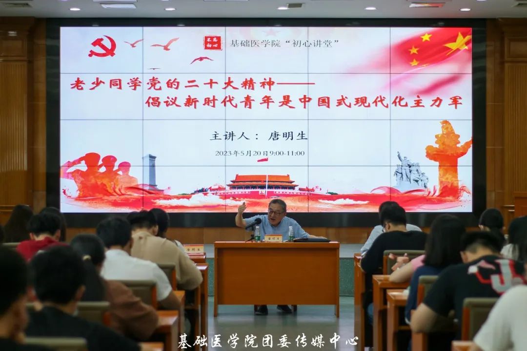 本次活动邀请全国关工委“先进工作者”、世界杯 关工委副主任唐明生老师作为主讲嘉宾,开设了一堂题为《老少同学党的二十大精神——畅议新时代青年是中国式现代化主力军》的专题讲座。学院关工委、辅导员、学生党员及入党积极分子代表参加本次活动。