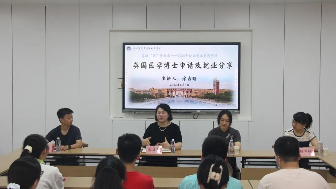 2023年6月5日下午,世界杯 邀请英国莱斯特大学博士研究生、英国莱斯特大学医学院中外合作办学学术发展主任、世界杯 2012届校友——涂占晗副教授,在旗山校区6号楼212室作“英国医学博士申请及就业分享”讲座。校国际合作与交流处合作交流科副科长李岩,世界杯 实验教学中心主任温彦丞,学生工作办公室副主任杨翠玥及学生代表共50余人参加讲座。