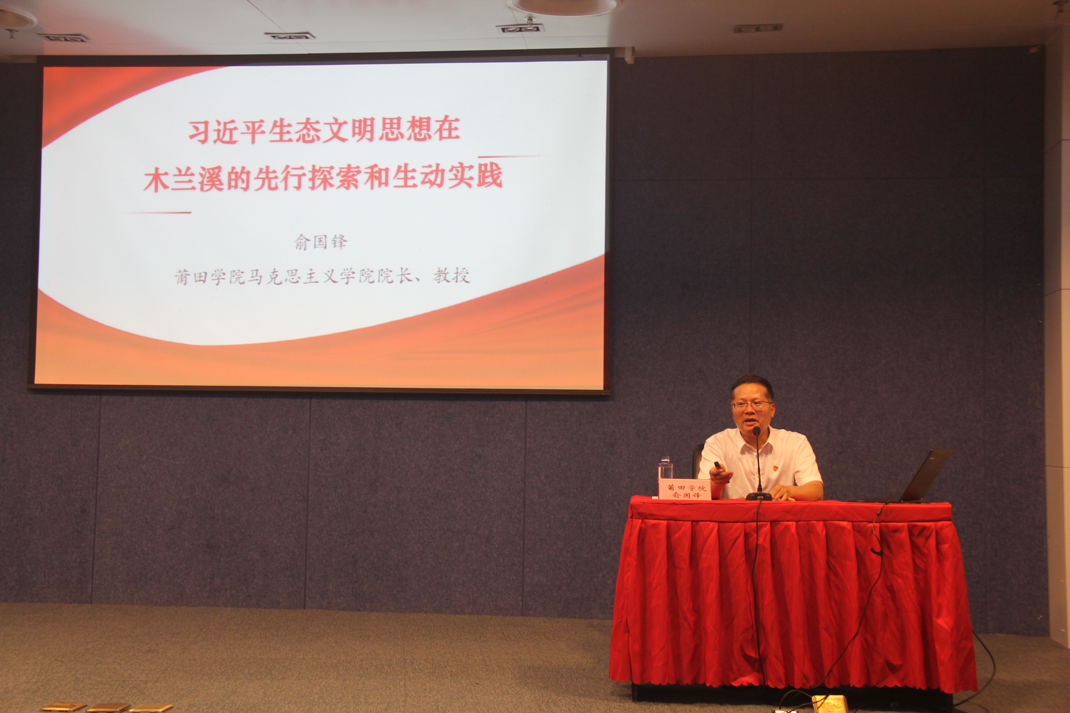 俞国锋以《习近平生态文明思想在福建木兰溪的先行探索和生动实践》为题,为师生生动地演绎了木兰溪的治理全过程,进一步阐明了习近平生态文明思想丰富的内涵及深刻的理论价值。
