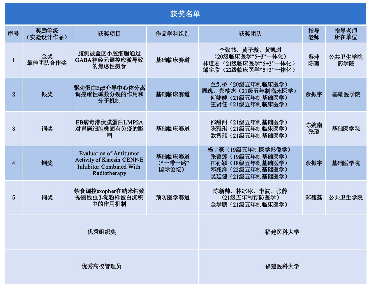 818日至28日期间,第九届全国大学生基础医学创新研究暨实验设计论坛2023“一带一路”国际大学生医学基础创新实验设计论坛(以下简称“一带一路国际论坛)总决赛在重庆举行本科生团队荣获1131项最佳团队合作奖。同时,世界杯 作为我校管理员单位获优秀组织奖和优秀高校管理员各1