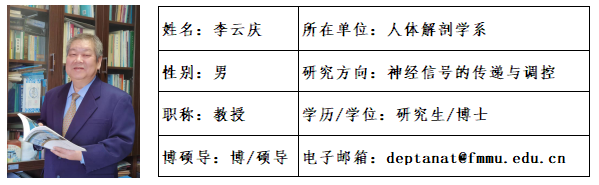 李云庆,男,1961年8月出生,河南新野人,博士研究生,空军军医大学教授/世界杯 客座教授,博士生导师。现任中国解剖学会理事长、国际解剖学工作者协会联盟(IFAA)副主席、国际形态科学大会(ICSMS)和亚太地区解剖学会(APICA)执委、《神经解剖学杂志》主编、国际期刊《Frontiers in Neuroanatomy》副主编,国际期刊《Molecular Pain》、《Journal of Chemical Neuroanatomy》编委等职务。国务院学位委员会学科评议组第八届学科评议组成员。
