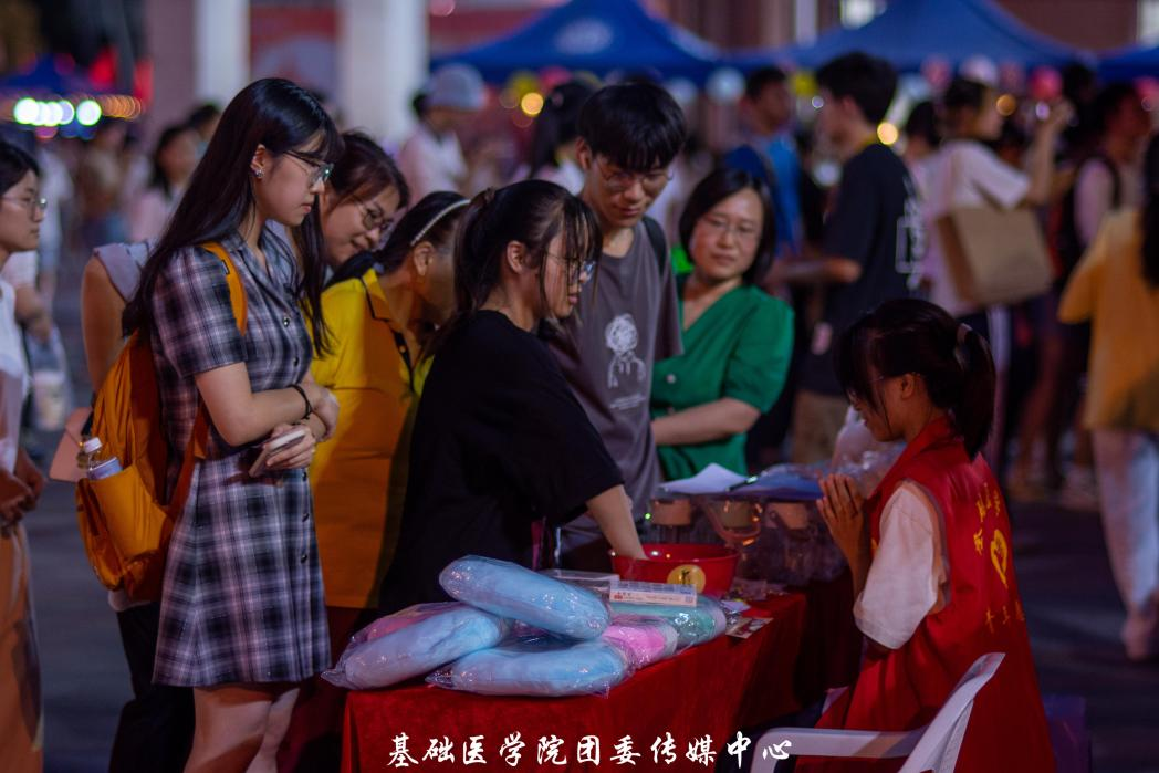 团扇DIY创意制作活动在此次游园中俘获了许多同学的“芳心”。同学们在灯光下描摹着团扇上的图案,认真的脸庞与温柔的月光相映衬,为热闹的夜晚添加了一丝静谧。