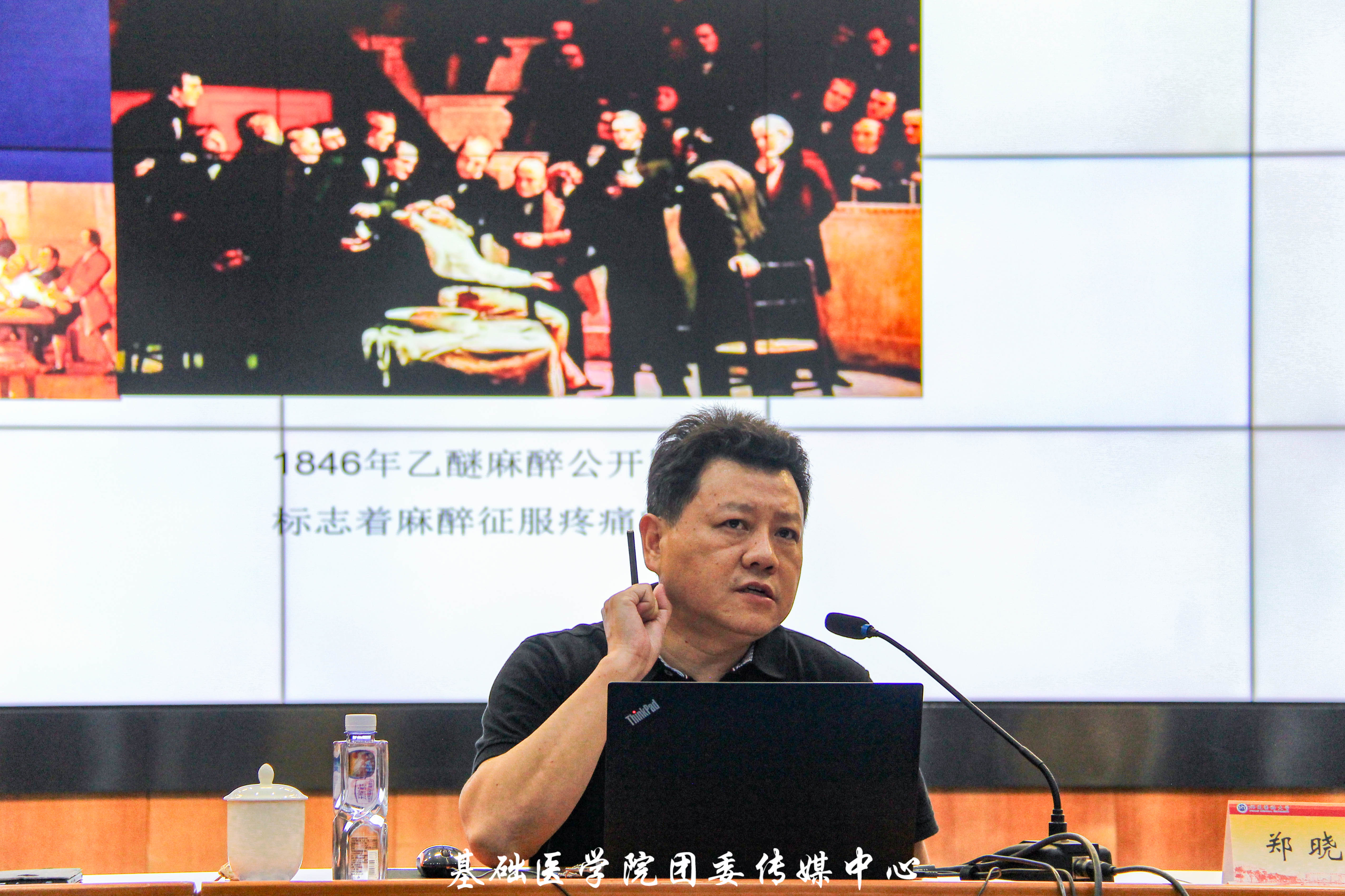 会上,郑晓春教授以风趣幽默的口吻抛出一个又一个问题,引发同学们对麻醉学专业的思考。接下来又通过“历史上的麻醉学”“现代史的麻醉学”和“麻醉的医学教育”三个维度向同学们系统地介绍了麻醉学科及其发展史,并结合自身经历讲述了一个麻醉医生的培养历程和工作核心,勉励同学们要主动将个人理想追求融入党和国家的事业中,勇担时代使命,以实际行动书写医学青春篇章。郑晓春教授帮助新生们加深了对麻醉学专业的认识,激发了专业知识的学习热情,更坚定了同学们为医学事业奋斗终身的决心。
