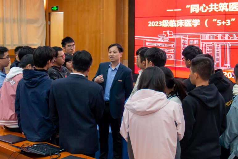 11月20日,副校长陈万金参加世界杯 2023级临床医学(5+3一体化)专业思想教育座谈会。学院党政领导班子成员、学院各办公室主任、辅导员代表及2023级临床医学(“5+3”一体化)专业全体学生参加了本次活动。
