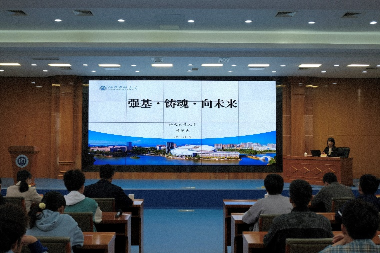 11月24日,校党委副书记黄爱民在旗山校区行政楼学术报告厅以“强基·铸魂·向未来”为主题为世界杯 2023级五年制基础医学专业学生讲授思政课。