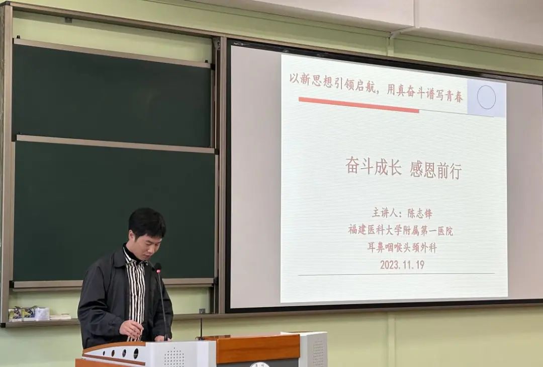 会上,陈志锋学长围绕“奋斗成长,感恩前行”的主题为同学们分享了他的成长经历。