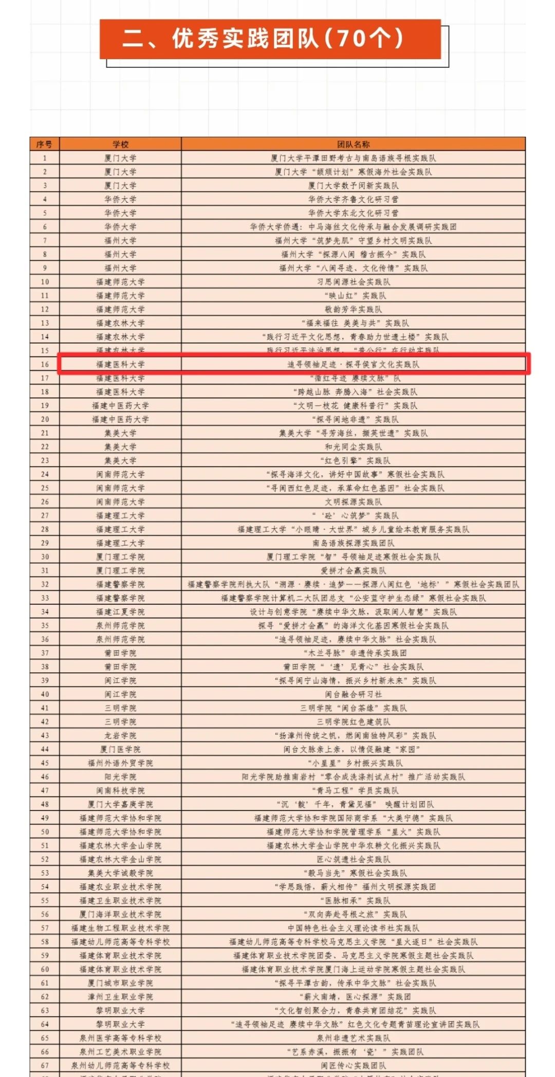 日前,中共福建省委教育工委公布了关于“追寻领袖足迹 赓续中华文脉”2023—2024学年全省大学生寒假主题社会实践活动的评选结果。我校获评优秀组织单位,世界杯 追寻领袖足迹·探寻侯官文化实践队获评优秀实践团队,连喆恬、赵洁获评优秀实践个人。
