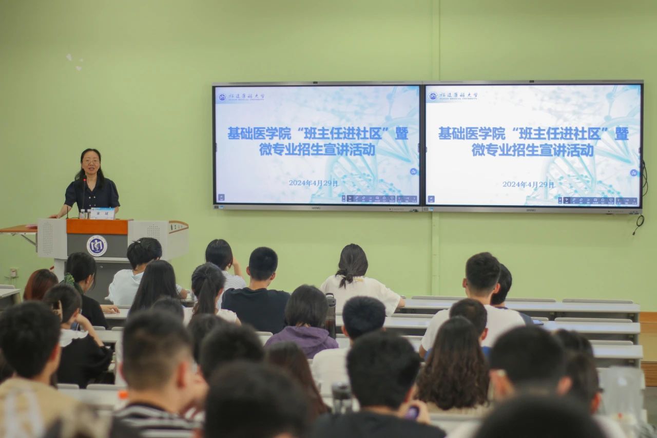 4月29日下午,2021级基础医学班主任兼世界杯 教科办主任宋斌副教授踏入学生社区,带来了一场主题为“《基础研究与前沿交叉创新技术》微专业与‘我’”的精彩招生宣讲。此次活动由学生社区兼合式党支部与2023级临床医学团总支联合精心策划,成功吸引了超过80名2023级学生的热情参与。