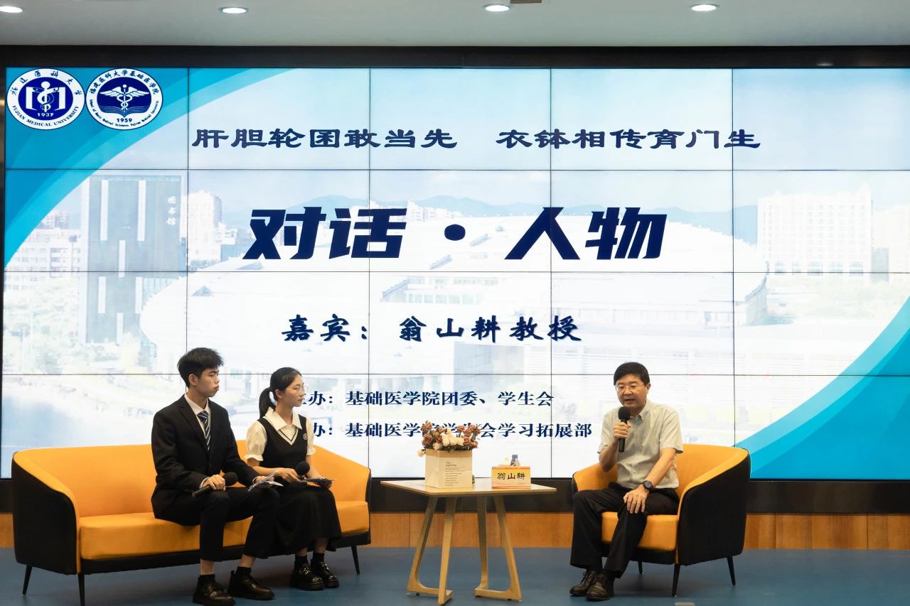 翁山耕教授回忆了自己在北京大学医学部的学习经历,他表示在高手云集的校园中学习可以激励每一位同学努力求学。同时,他以自身经历为例,希望同学们积极参加各领域学术讲座,去提升自身综合素质。