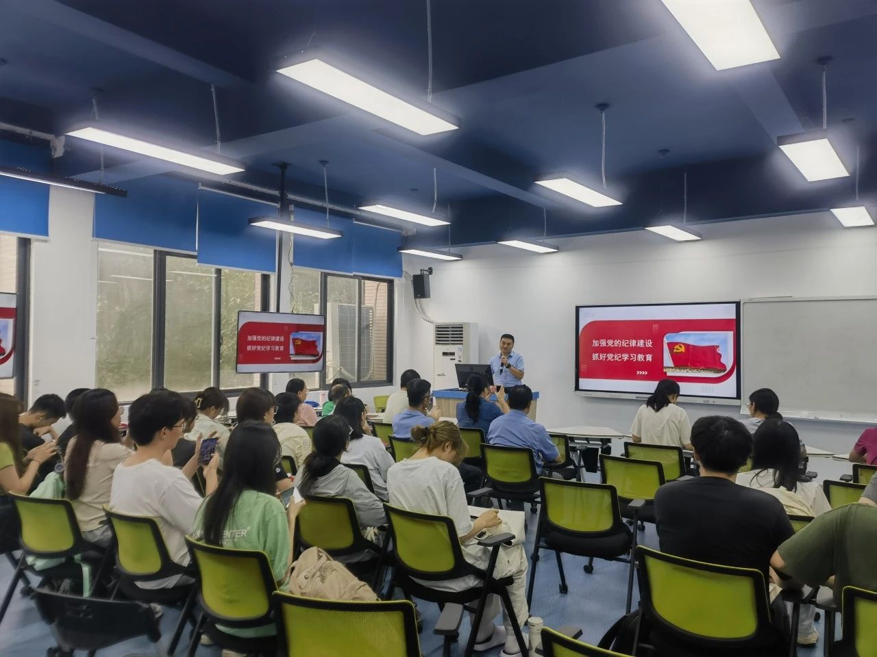 为加强党纪学习教育,推动全面从严治党向纵深发展,6月19日,世界杯 党委副书记秦雷以“加强党的纪律建设 抓好党纪学习教育”为主题,为联系党支部党员、入党积极分子培训班学员讲授专题党课。