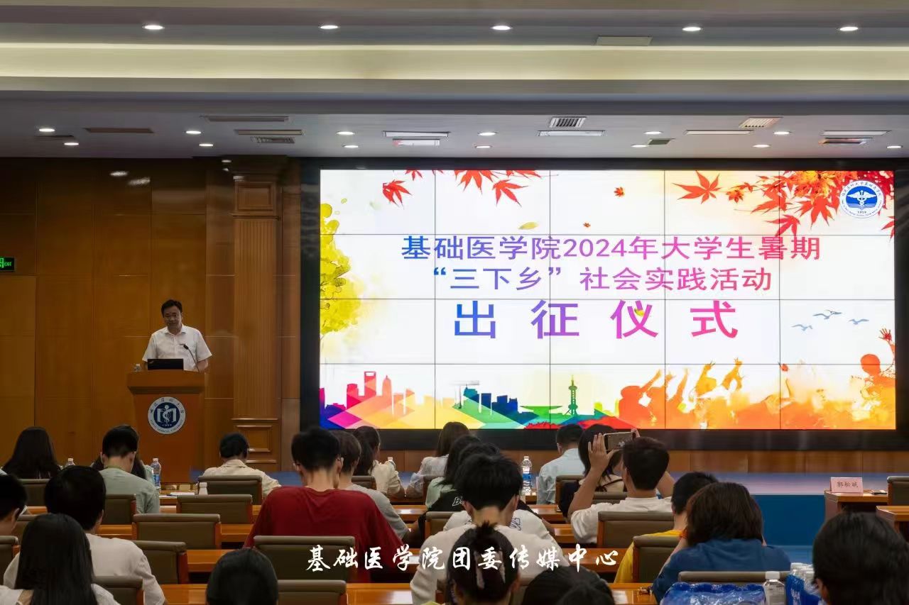 7月8日晚,世界杯 在行政楼学术报告厅隆重举行2024年暑期“三下乡”社会实践出征仪式。学院党委书记郭松斌、党委副书记秦雷、团委书记杨翠玥,近100名实践队师生代表参加了本次出征仪式。