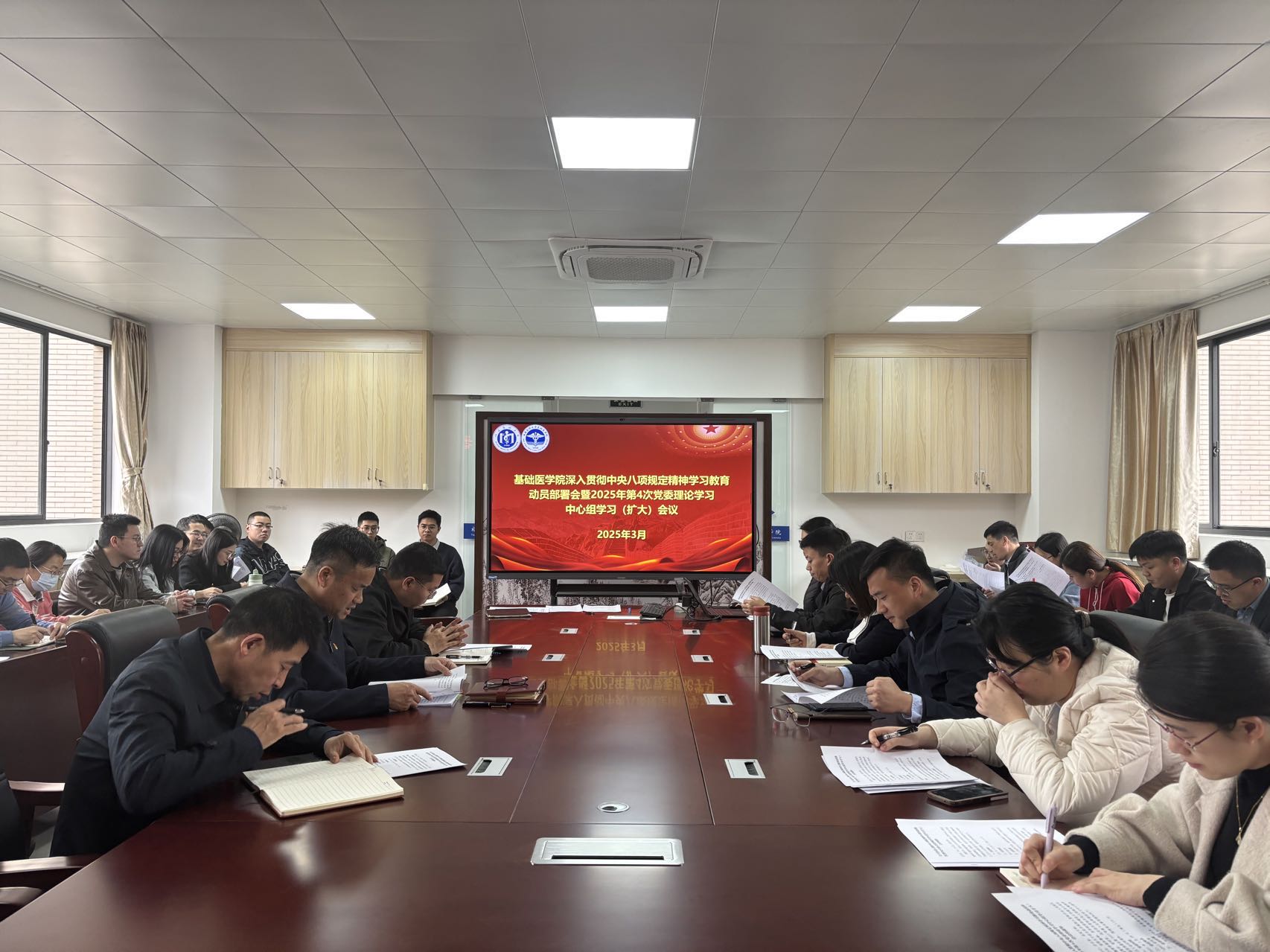 2025年3月28日,世界杯 党委召开深入贯彻中央八项规定精神学习教育动员部署会,认真学习贯彻习近平总书记关于深入贯彻中央八项规定精神学习教育的重要讲话和重要指示精神,贯彻落实中央、省委和学校党的建设工作领导小组会议部署要求,研究部署全院学习教育工作。学院党委书记郭松斌主持并讲话。
