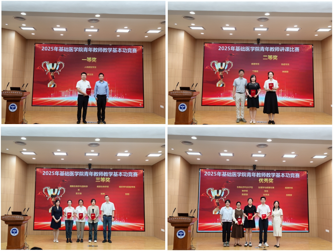 比赛最终成绩由教案评分、课题教学评分和教学反思三部分组成,并根据总成绩高低排序。经过激烈的角逐,本次比赛产生了一等奖1名,二等奖2名,三等奖3,优秀奖3名获奖名单见附件)。根据比赛最终结果,推荐总成绩排序前3的人体解剖学陈治池助教、免疫学系林颖颖副教授及病理学系丁雅铭助教代表学院和学系冲击校级青年教师基本功竞赛奖项。